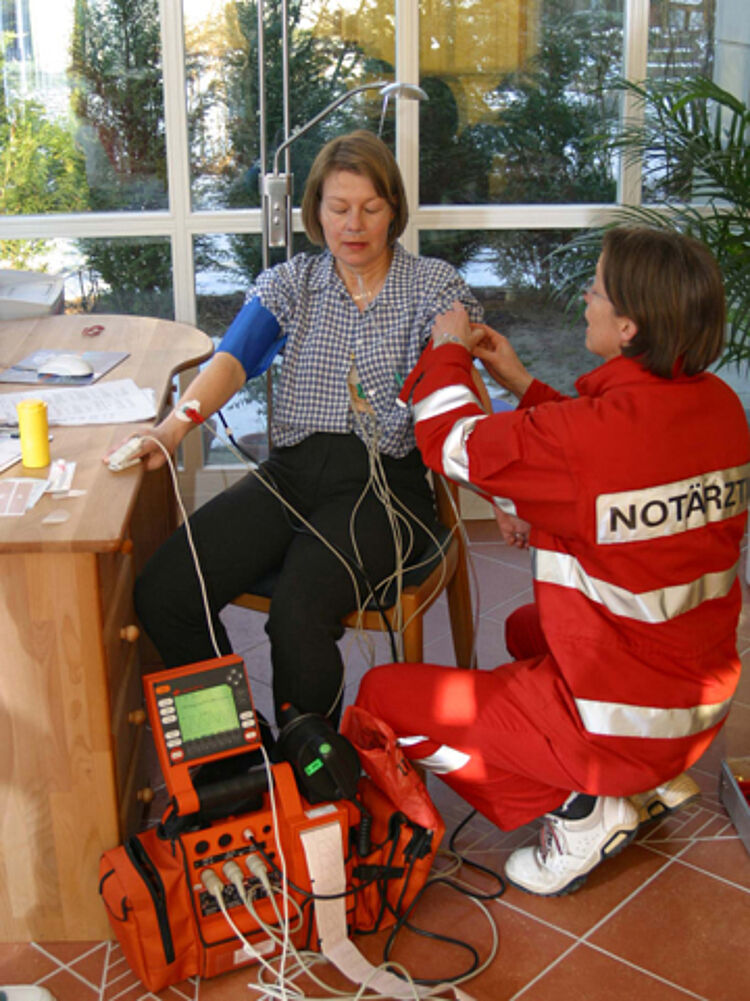 In dieser Situation kommt vom Roten Kreuz ein besonderer Vorschlag: ob ich nicht selber einmal in die Rolle einer Notfallpatientin schlüpfen wolle. Diese Idee gefällt mir – gleichzeitig spüre ich ein leichtes Flattern im Bauch – und ich stimme zu. Wir beschließen, einen für den Rettungsdienst typischen Notfall zu simulieren: den Verdacht auf einen Herzinfarkt. Alle haben grünes Licht für unser Projekt gegeben: die Rettungswache – dort ist der Rettungswagen stationiert, die Notärztin und das zuständige Krankenhaus.